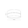 Klosz plafonu składa się z dwóch warstw tkaniny, pomiędzy którymi znajduje się wąska, centymetrowa szczelina. W ciągu dnia stanowi ona dekoracyjny element, a po włączeniu światła rozświetla się miękkim blaskiem, tworząc subtelną aureolę na suficie lub ścianach. Wnętrze klosza pokryto złotą folią, która odbija światło i potęguje jego ciepły ton, wprowadzając do pomieszczenia przyjemny, nastrojowy klimat.